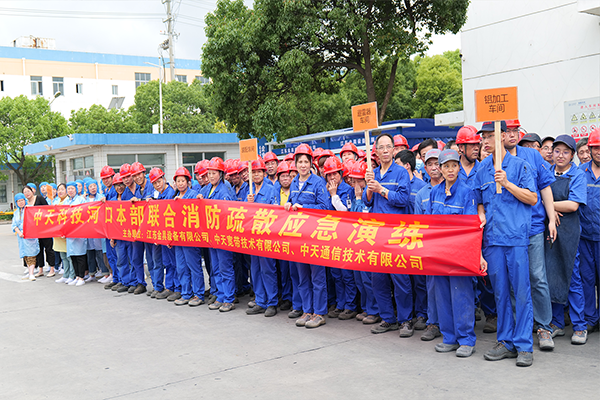 為認(rèn)真貫徹“安全第一,預(yù)防為主”的方針,落實(shí)公司的應(yīng)急預(yù)案管理制度,2024年6月27日,江東金具及中天寬帶公司、中天通信公司一同組織了人員疏散及滅火演練。