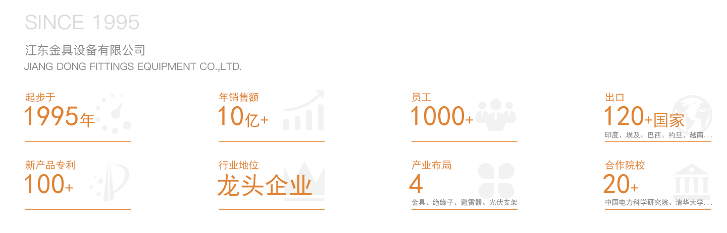 江東金具設(shè)備有限公司系江蘇中天科技股份有限公司(上市代碼600522)全資子公司,創(chuàng)建于1995年,注冊資金31900萬元,占地146000平方米,擁有118000平方米的標準廠房,共有員工1000人,其中工程技術(shù)和研發(fā)人員150人,是專業(yè)制造金具、絕緣子、避雷器和光伏支架等產(chǎn)品的高新技術(shù)企業(yè)。