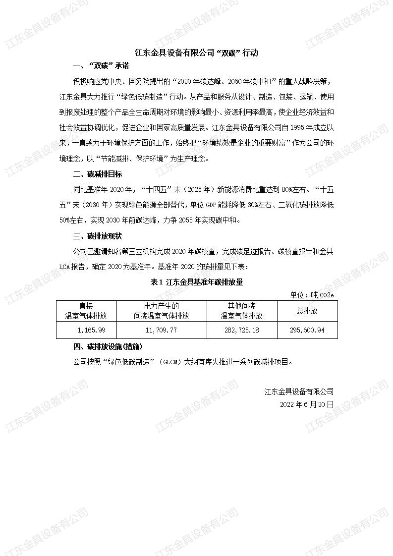 江東金具設(shè)備有限公司"雙碳"行動(dòng)公示